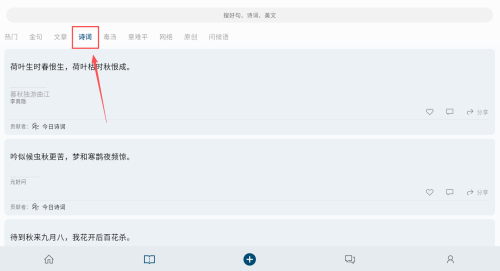1、每日上线第一时间要查看您的诗词,得到大量信息资源,方便后续软件体验哦。