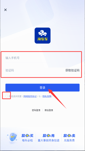 2、登录界面输入手机号及验证码,确认协议后完成账号登入。
