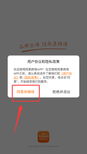1、于用户协议弹窗中点选同意并继续,随后进入登录页面。