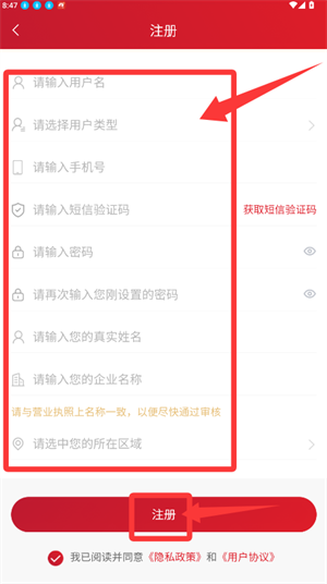 1、在注册页面填写信息并同意协议,即可创建账号。
