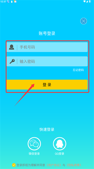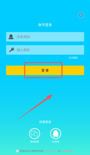 3、最后输入手机号与密码,点击登录按钮即可完成账户登入。