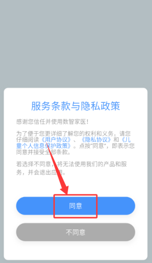 1、打开应用查看服务条款,确认后点击同意按钮进入。