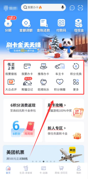 4、该页面同时整合了信用卡在线申请、推荐亲友办卡奖励、车主专属信用卡服务及积分礼品兑换等功能入口。