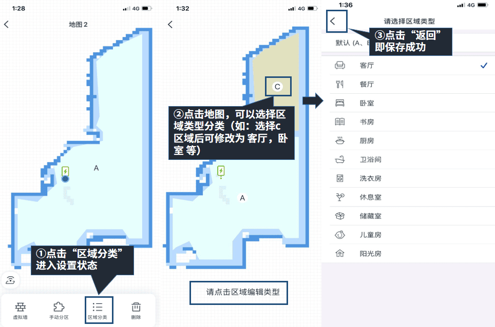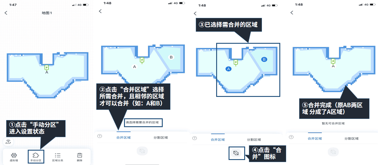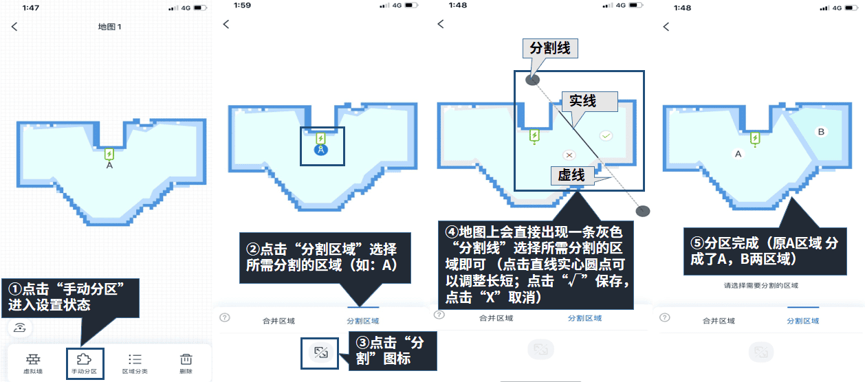 四:手动分区设置(固件版本1.5.3及以上,需配合ECOVACS HOMEAPP版本1.5.5及以上使用)