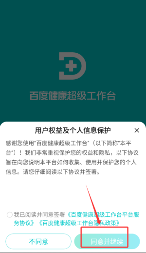 1、轻触同意按钮,顺利进入应用界面,开启便捷医疗服务新篇章。