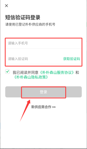 3、在界面输入手机号验证码,勾选协议后点击登录完成。