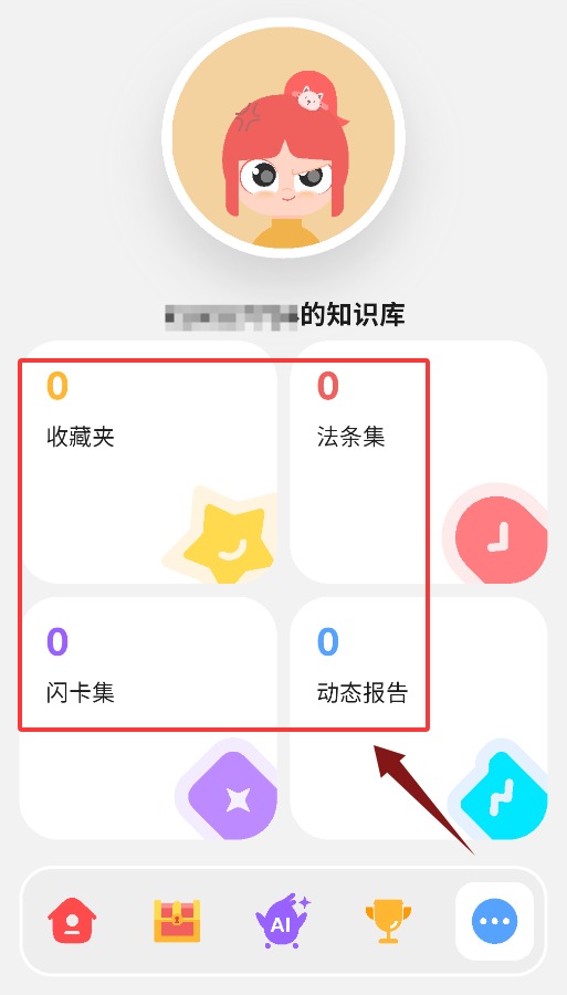 2、知识库界面可查看收藏夹、法条集、闪卡集与动态报告。
