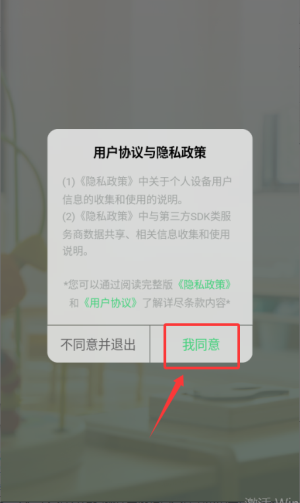 1、打开应用查看用户协议,点击我同意按钮进入登录相关页面。