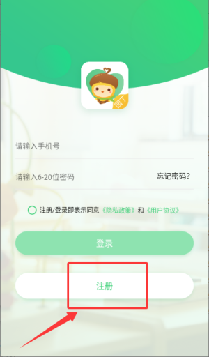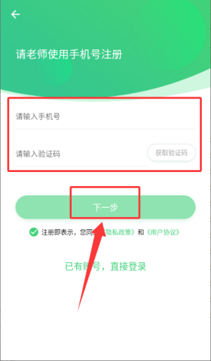 2、在登录界面找到注册按钮,点击跳转至老师手机号注册页。