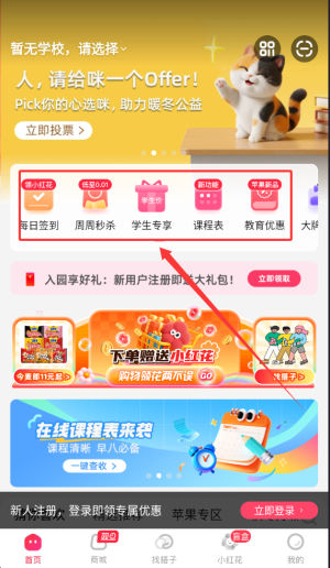 2、校内门店供应丰富商品并推出多样促销,贴合年轻人的消费偏好,每笔消费均可积累小红花,红花可兑换更多实用权益。