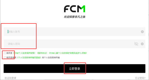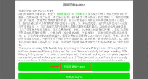 1、启动FCM Mobile应用,在提示页面点击“同意并继续”授权。