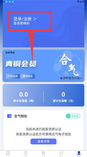 1、个人页点击登录注册入口,即可完成账户验证。