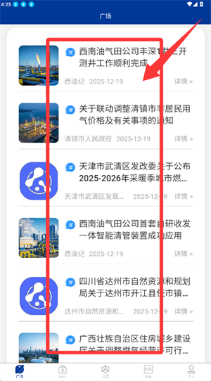 2、切换至广场页,浏览并选取感兴趣的资讯。