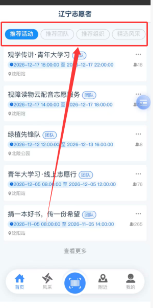 4、页面同时展示推荐活动列表、推荐团队信息、推荐组织资料及精选风采内容。