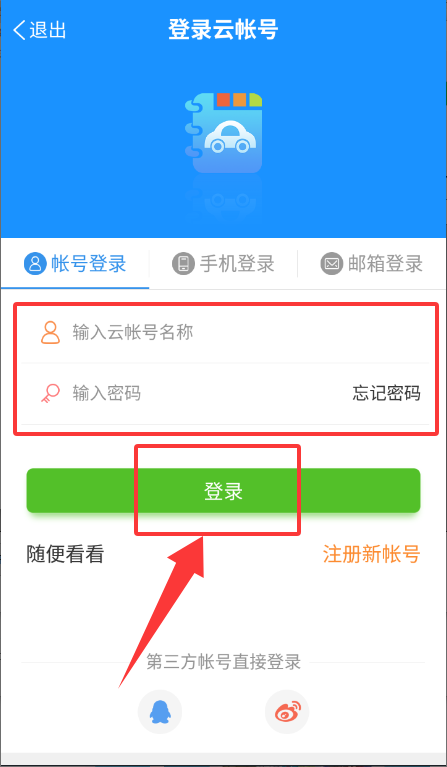 2、在登录云帐号页填写名称与密码,确认后点击登录按钮完成。