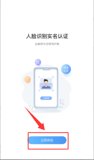 1、打开应用后在人脸识别页点击立即体验,进入手机登录界面。