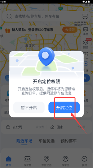 1、启动应用后开启定位权限,即可获取周边精准停车信息服务。