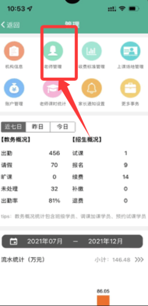 1、登录账号进入主页,可查看学员列表与课程安排,及时更新学生信息,管理班级数据。
