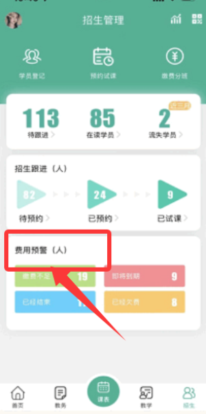 机构可以在雷小锋app自定义学员费用预警的标准.
