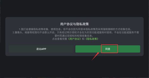 1、启动黑盒语音应用,在协议政策页面点击同意以进入应用。