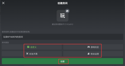 3、于创建页面选择房间类型并设置信息,最后点击完成创建。
