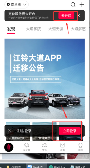 1、首先在应用商店搜索江铃大道app并下载安装,打开后使用车主信息完成注册与车辆绑定。