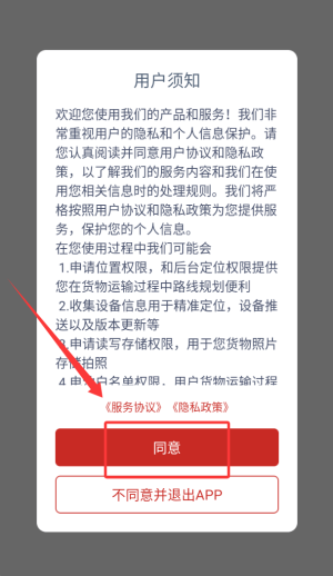 1、勾选同意平台协议并登录应用,进入物流服务主功能界面。