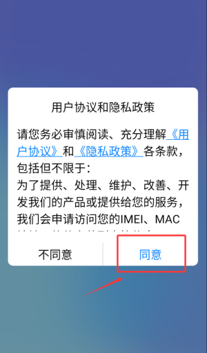 1、阅读并勾选用户协议,点击进入应用主服务界面。