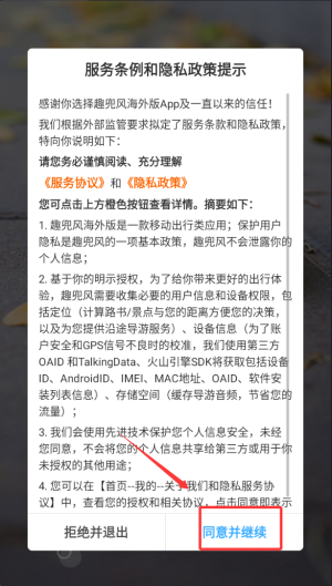 1、首先点击同意并进入应用,开启您的智能旅游助手服务平台。