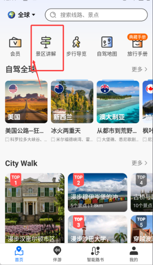 2、随后体验景区语音讲解功能,聆听各地名胜古迹的专业导览介绍。