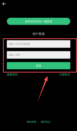 2、登录可一键使用本机号码或手动输入账号密码忘记密码时可选择重置。