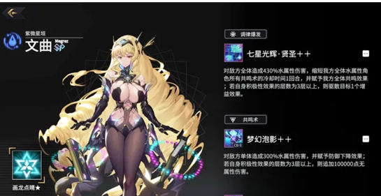 文曲是一个可以放进任何队伍中的角色,可以和任何技能效果很强的水属性角色搭配。