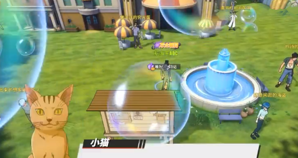 2、找到难为情的年轻人,对话后,去喷泉广场找小猫,如图所示,对话。