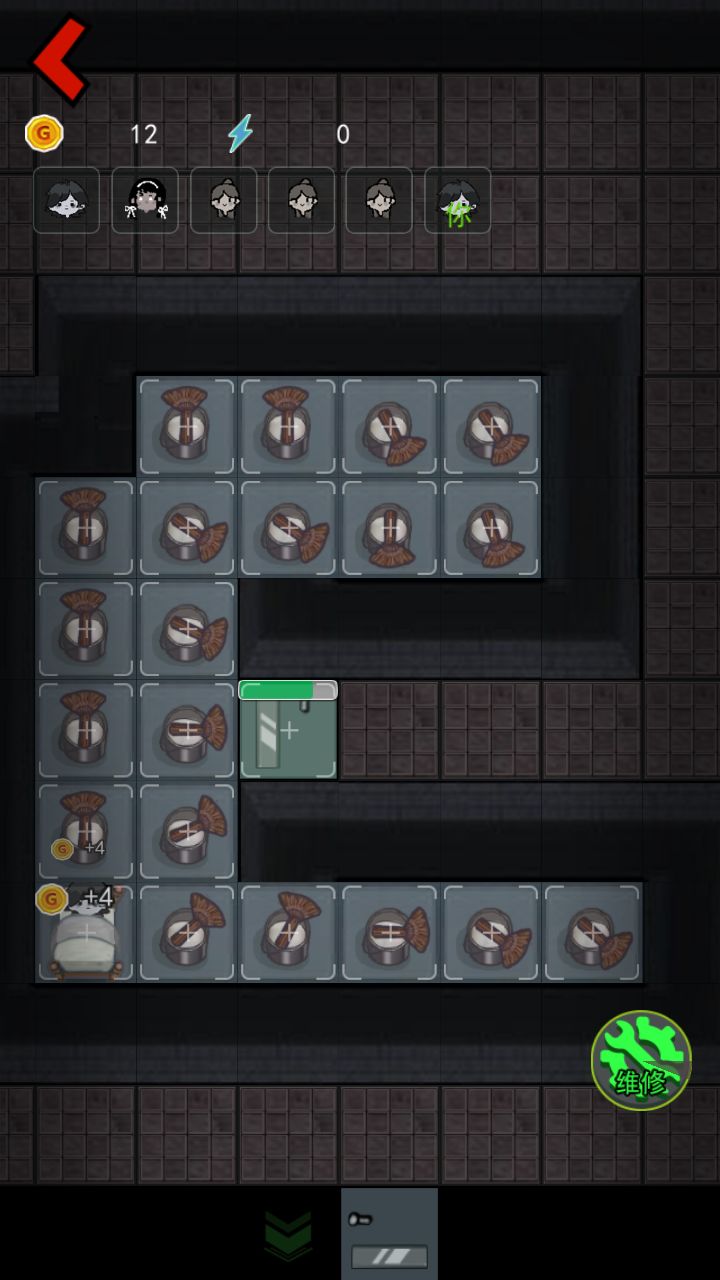 如果此时鬼没有来挠门,继续攒50块升床,此时如果鬼来,门升3级即可(门快没血时在点升级)