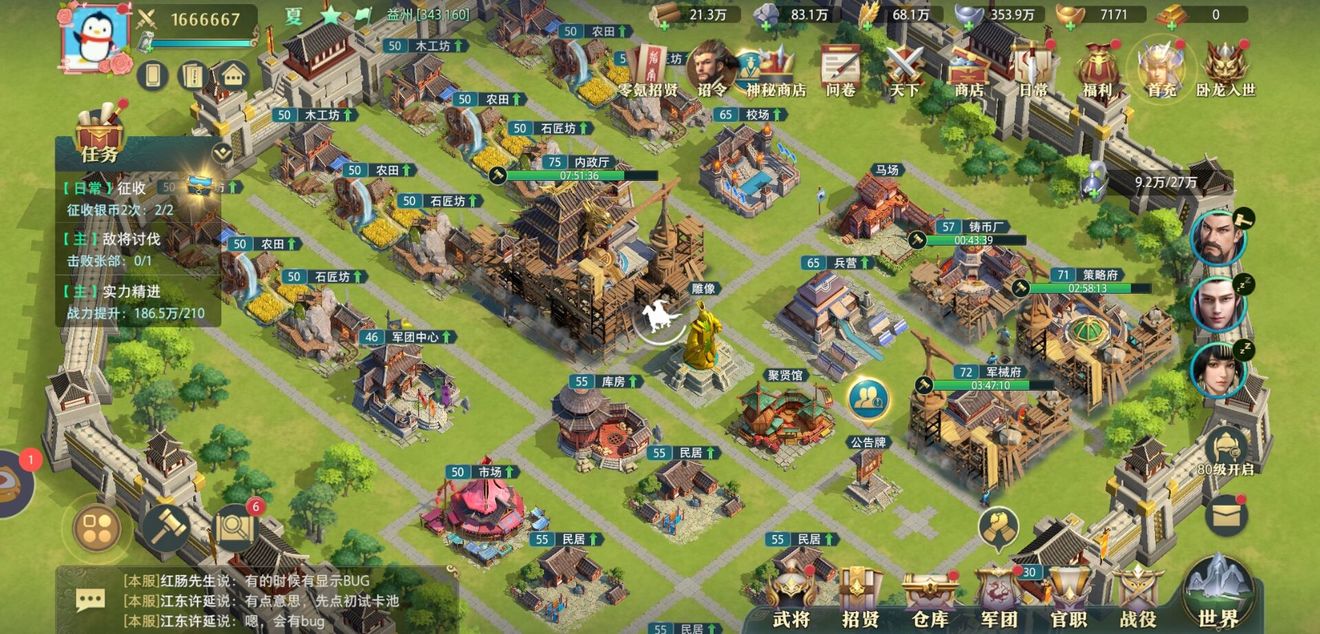 争取40级时所有武将全部解锁三阶兵种。