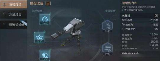 ①火力核心:升级火力核心模组可以提升狙击炮台的火力,升级至满级后最高可提高32%火力。