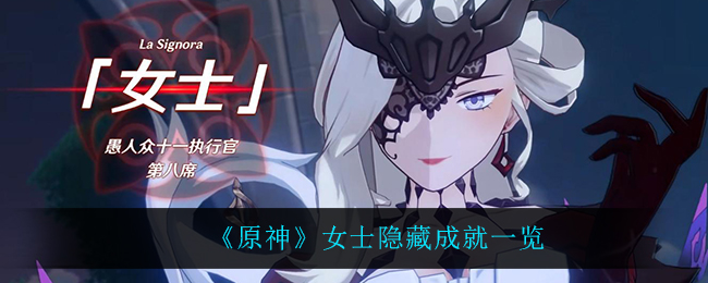 在原神中每个boss都会有隐藏成就,很多小伙伴都很想知道女士的隐藏成就是什么,今天小编给大家带来了《原神》女士隐藏成就一览,感兴趣的小伙伴一起来看看吧,希望可以帮助到大家。