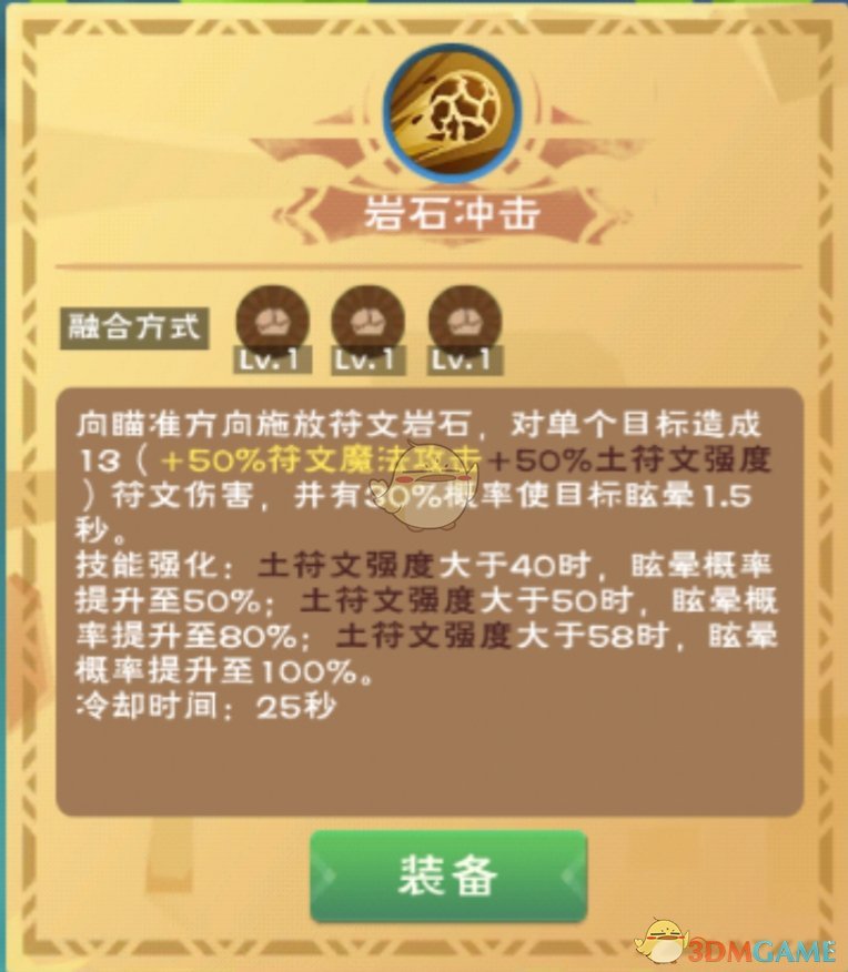 符文魔法攻击大于50时,眩晕概率提升至100%,冷却时间25秒