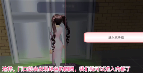 再次来到桃子组内部房间的门前,会看到地面出现绿色的圈圈,届时我们就能进入桃子组内部了。
