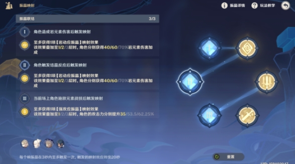 本关映射:岩元素伤害、攻击力、重击暴击率三种属性提升