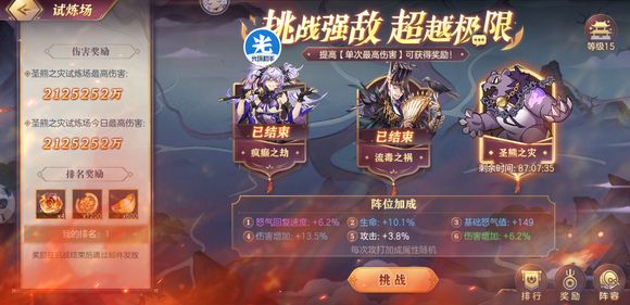 3、试炼场奖励分为每日奖励与排名奖励,奖励可获得阶段性材料、桃园币和元宝;