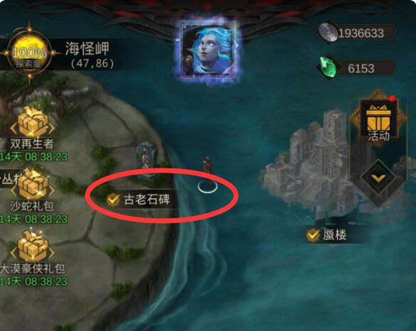 2、我们完成上述任务获得水上漂技能,使用水上漂来到古老石碑,点击。