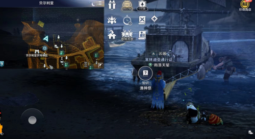3、最后我们往右侧海边走,看到渔船,在渔船边上即可获得渔神祭知识。