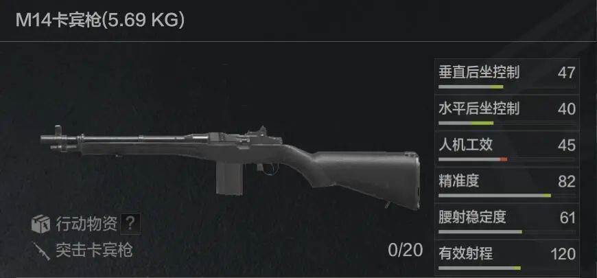 M14是使用7.62x51毫米子弹的突击卡.宾.枪中综合实力最强的,不少游荡者就是用这把枪把路过的先锋打成“黑手党”(手臂损坏)。原厂M14的机械瞄具就足以应对近距离作战场景,但是喜欢这把枪的先锋也可以考虑多投入一些预算让它的威力更上一层楼。首先是更换更加现代化的M14天使托,加装前握把来提升后坐控制。然后是更换加长枪管,加装消音器,并配备一个高倍镜。这样就能将精准度提高到90,有效射程提高到135,达到招牌射手步枪M110的水平,并且消音效果比M110更好。在没钱起满改M110时,满改M14也是个很不错的选择。
