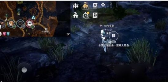 3、NPC【帕特雷欧】,一直往西北方向移动,在岔路口选择左侧,然后在水池中的大石头上可找到镜鱼。