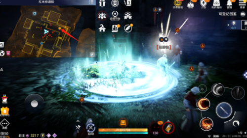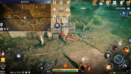 跟随任务指引逐步推进,直到需要我们消灭暴躁的狂暴使者,在小伙伴们到达位置后,仔细观察大地图附近是否有下图红色箭头指引的黄色小太阳标记,该类标记为狂暴的怪物。