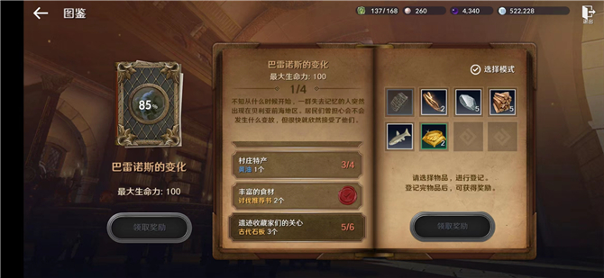 石室墙壁石板可以解锁图鉴巴雷诺斯的变化中的遗迹收藏家们的关心