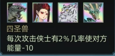 ①四圣兽:每次攻击侠士有2%几率使对方能量-10
