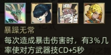 ③暴躁无常:每次造成暴击伤害时,有3%几率使对方武器技CD+5秒