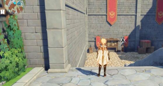 3、然后我们在蒙德城门拐角处,即可看到头上三角形标志NPC。